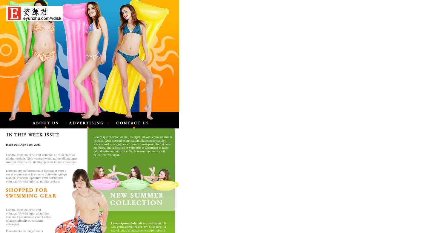 夏日游泳用品EDM网页模板资源下载,文件预估大小:1.12M